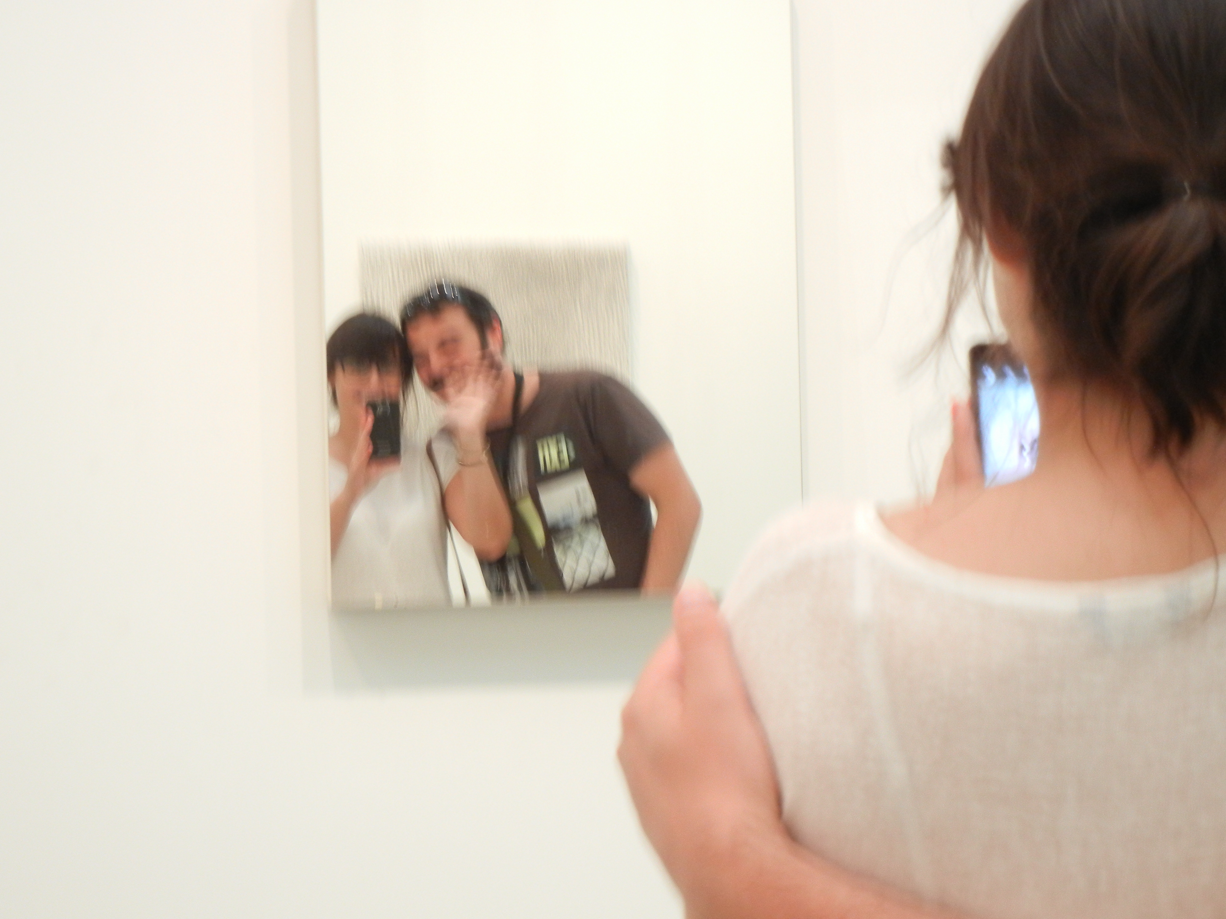 Nonetheless, as I stood and watched people walk by I had to admit that the mirror garnered a fair bit of attention and I’m pretty sure there were a few people who, like me, were kicking themselves for not coming up with the idea. But the longer I stood in front of the mirror watching all of the reactions the more I thought about the exhibit and somewhat surprisingly, I came up with an idea of my own. You see, most of the people who stood in front of the mirror decided to take a picture of themselves standing in front of the mirror. What if, I thought, I could capture the images of the people who had stopped to reflect on the images of themselves? What if I stood behind them and took a picture of them taking pictures of themselves? Would that not make me an artist as well? So that’s what I did and here are some of the results.